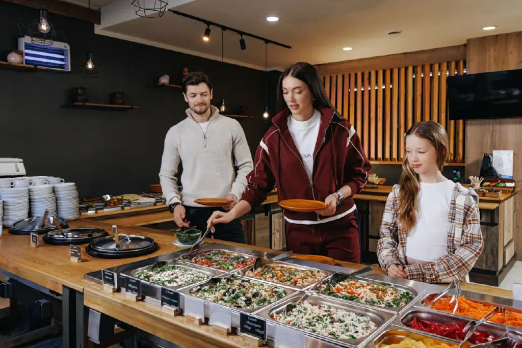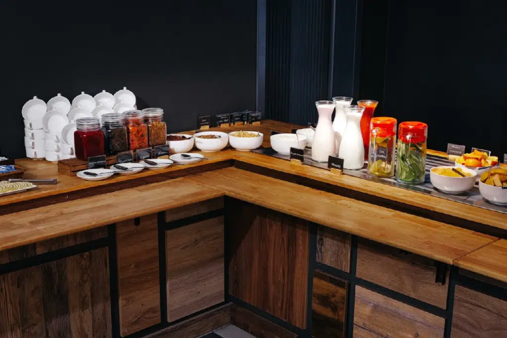 В стоимость включены завтраки в формате «шведский стол» или проживание без питания. На первом этаже отеля расположено кафе-столовая «Cafe#28». Дополнительно работает бар. Осуществляется обслуживание в номерах. Гости могут арендовать беседку с мангалом. На территории 5 беседок, каждая вместимостью до 15 человек. Площадка находится в 200 метрах от отеля.