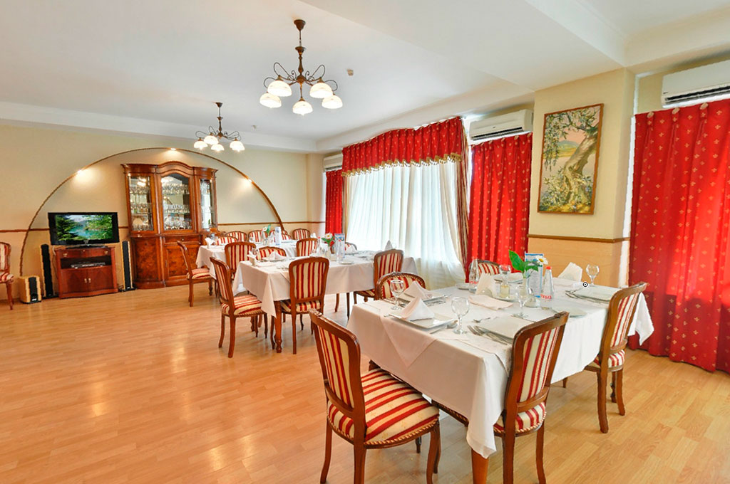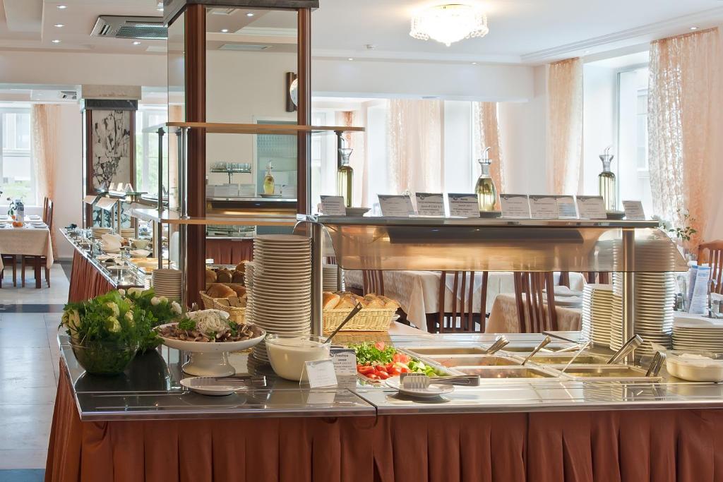 В санатории организовано 3-разовое питание по системе «шведский стол» с учетом 15 разновидностей диет в ресторане «Шведской линии». В VIP-ресторане «Lermontoff» организовано питание для гостей, проживающих в номерах De Luxe Suite. Посетителям доступен «шведский стол» и заказ блюд по меню. Дополнительно работает летнее кафе «У озера», фито-бар и лобби-бар (3 дня в неделю).
