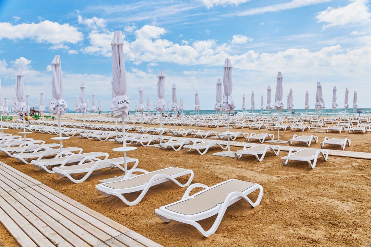 В распоряжении гостей собственный пляж с лежаками и зонтиками, баром, волейбольной площадкой, раздевалками, туалетами и душем.