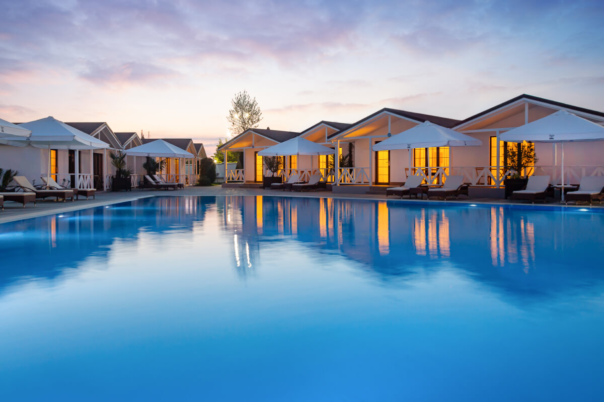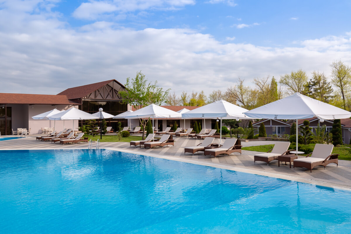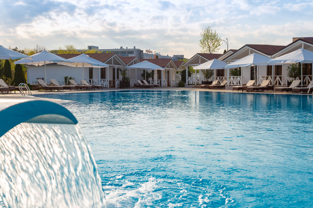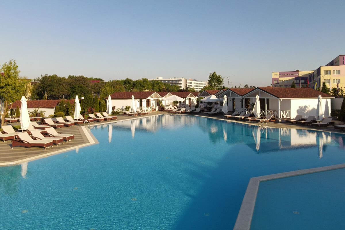 На территории отеля компактно размещен открытый подогреваемый бассейн площадью 650 м² и глубиной 1,8 м с гидромассажной и детской зоной купания. Территория вокруг бассейна оснащена большими зонтами, шезлонгами и лежаками с мягкими матрасами.
