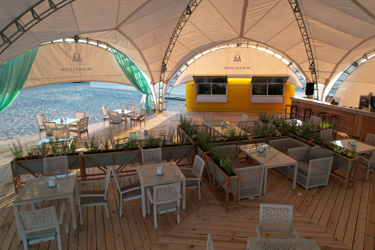 Дополнительно работает A la cart кафе «Удачный бургер» с открытой террасой и лобби-бар, где только что прибывших постояльцев угощают шампанским.