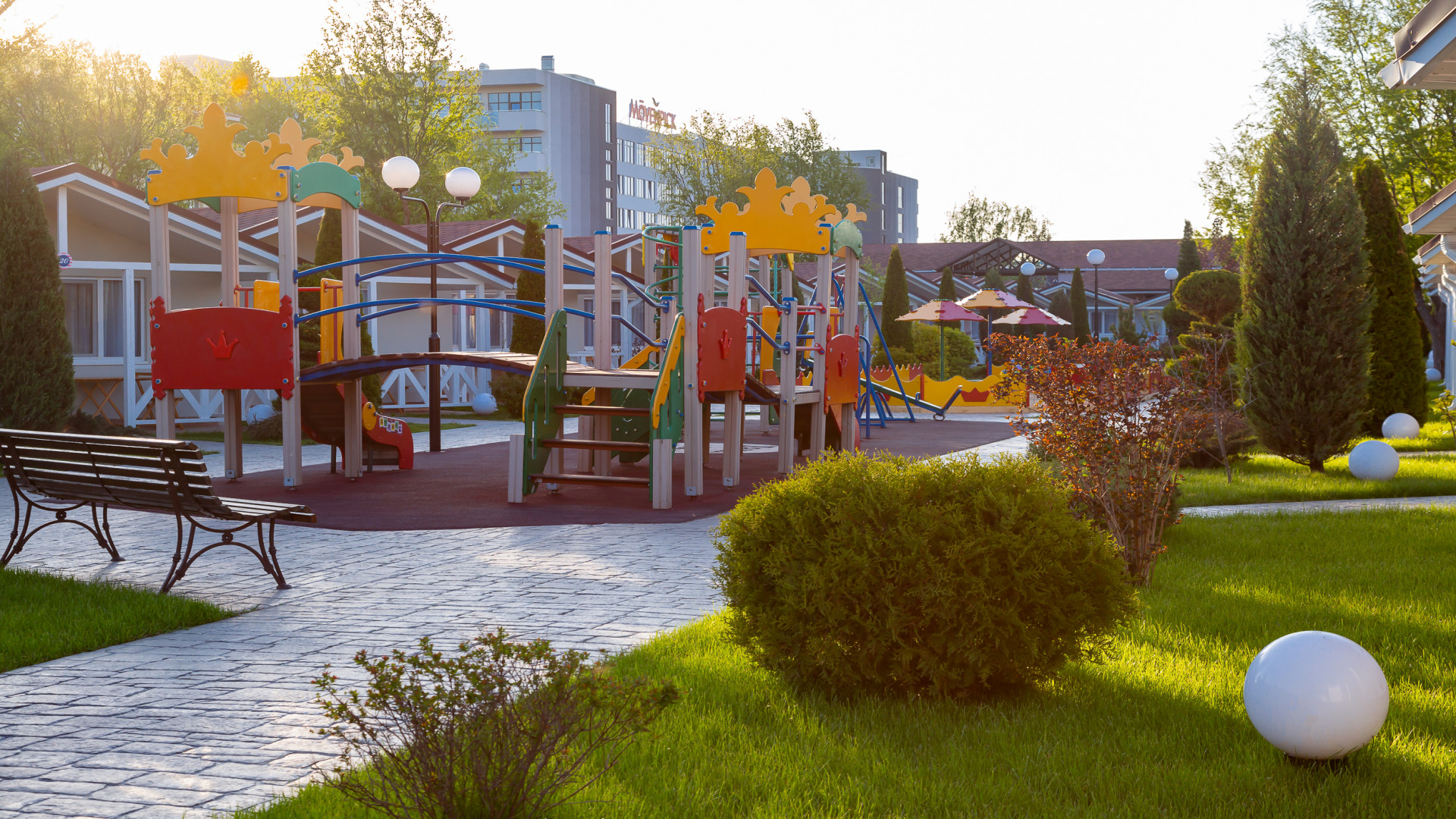 Для маленьких гостей оборудована детская комната с воспитателем и детская площадка на открытом воздухе. Ежедневно для детей и взрослых работает команда анимации.