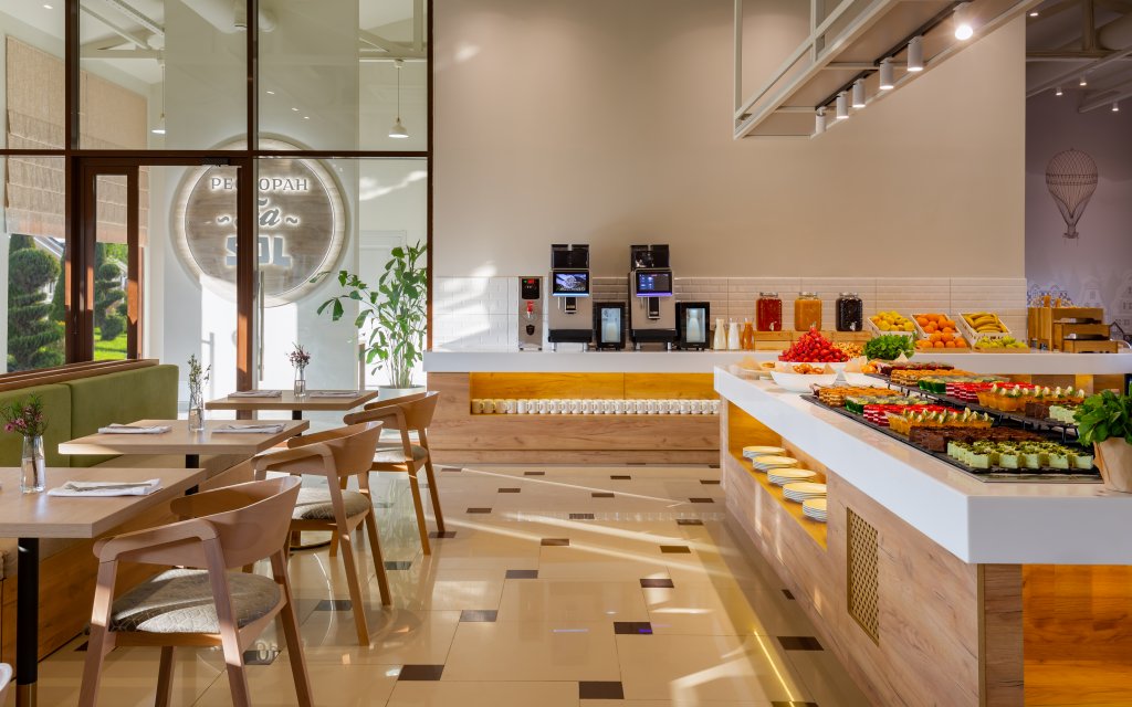 В ресторане «FaSol» ежедневно проходят завтраки, обеды и ужины по системе «шведский стол». В любое время здесь можно отведать блюда русской и европейской кухни, легкие закуски, фрукты, а также свежую выпечку, кондитерские изделия и десерты собственного приготовления. Для маленьких гостей в ресторане есть отдельные детские залы, где представлен разнообразный выбор блюд для детей до 12 лет.