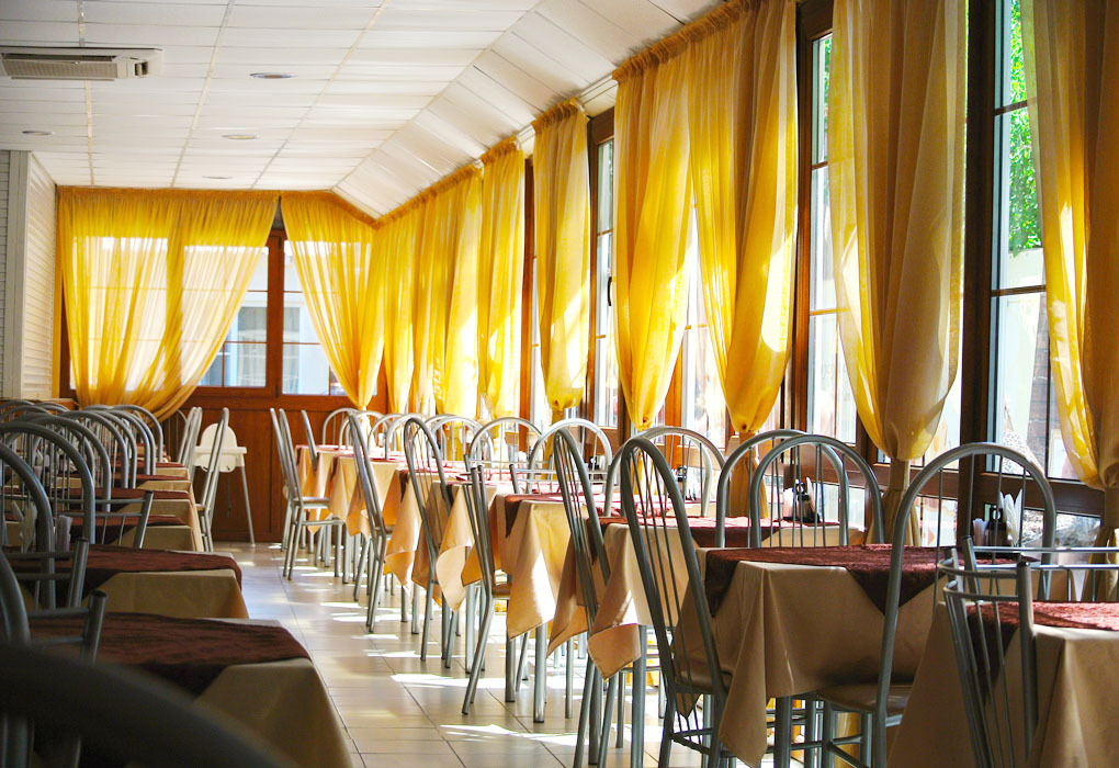 Отель работает по системе «Все включено». Завтрак, обед и ужин сервируются в основном ресторане «LeDune», здесь подаются первые и вторые блюда из мяса/птицы/рыбы, холодные закуски и салаты, свежие овощи и сезонные фрукты, кондитерские изделия и десерты, молочная и кисломолочная продукция (диетические и молочные каши), лимонад, соки, компоты, кофе и чай. На обед и ужин предлагается пиво, шампанское, вино (красное и белое) от кубанских производителей. Для малышей разработано специальное детское меню. Выбор широкий - это куриный бульон с лапшой, лёгкие куриные котлетки и молочные отварные сосиски, фигурные макарошки, картофельное пюре, гречка, пельмешки, овощные салаты и другие блюда.