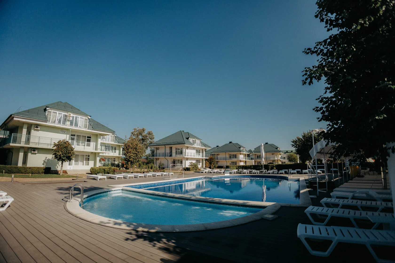 Комплекс занимает закрытую, охраняемую территорию площадью 2,2 га и предлагает для размещения 8 коттеджей и 3 корпуса с номерным фондом 116 номеров от Стандарта до Семейных апартаментов. Все номера имеют собственные просторные террасы или балконы.