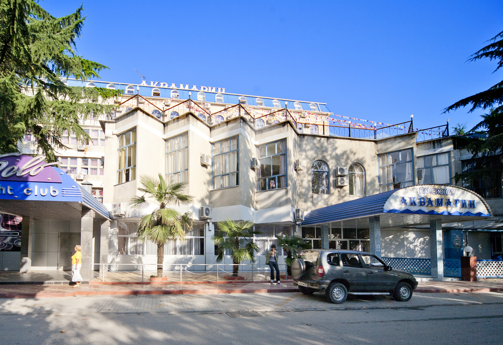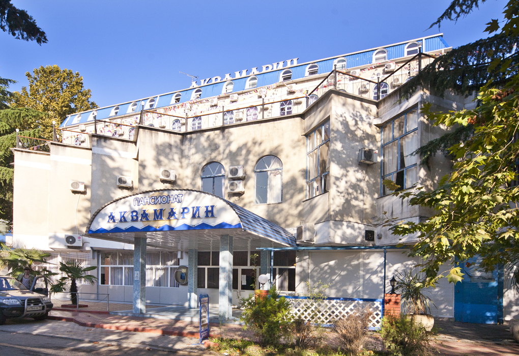 Пансионат «Аквамарин» – небольшой пансионат, расположенный в курортном поселке Хоста, в нескольких метрах от берега моря в окружении парка. Жилой фонд пансионата представлен 114 номерами, расположенными в 6-этажном корпусе. Все номера оснащены телевизором, холодильником и кондиционером.