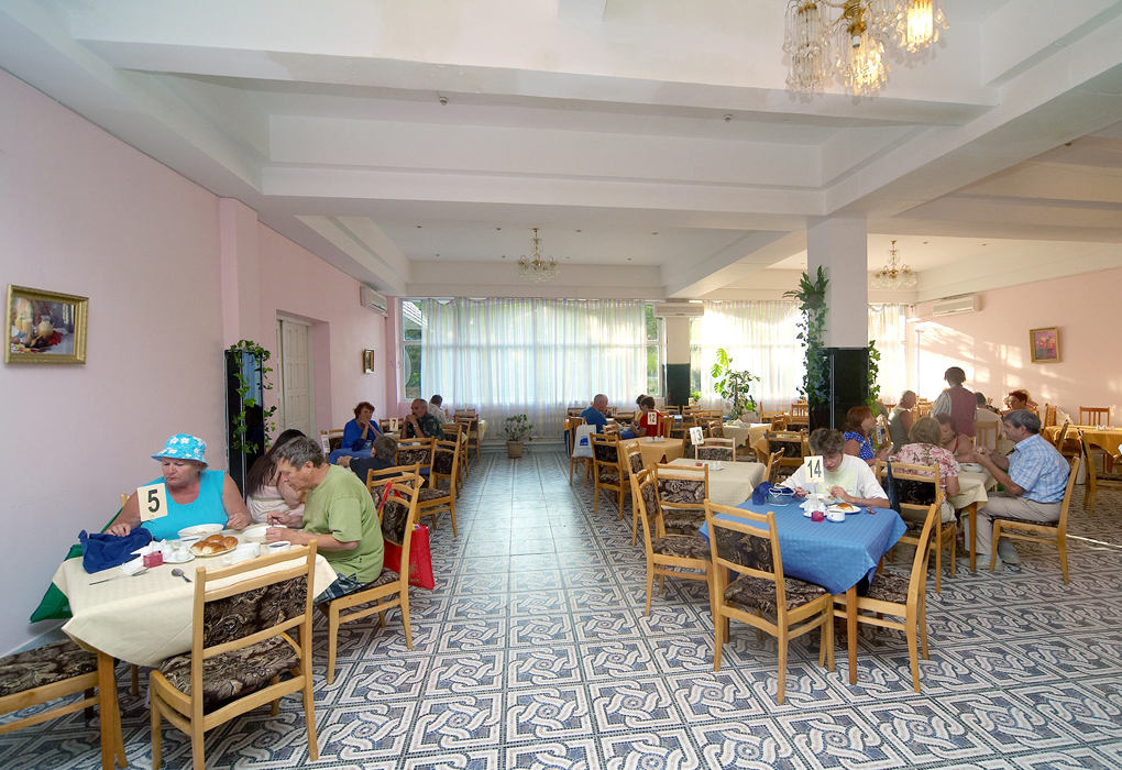 В стоимость проживание включены завтраки, 3-разовое или 2-разовое (завтрак + обед или завтрак + ужин) комплексное питание, в зависимости от типа путевки. Дополнительно для гостей пансионата работают летнее кафе и два бара. Возможно размещение без питания.