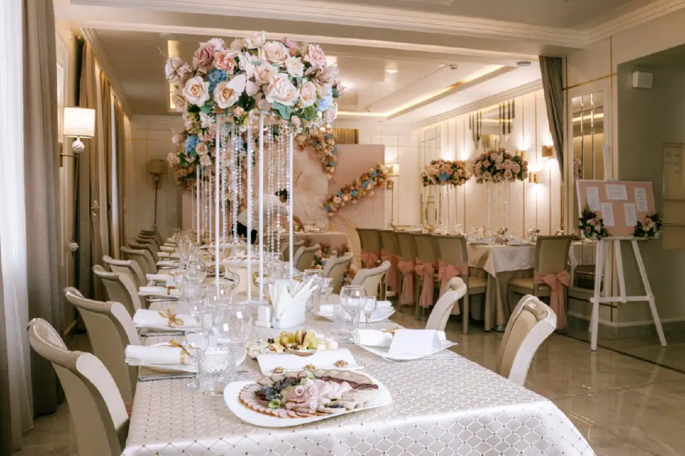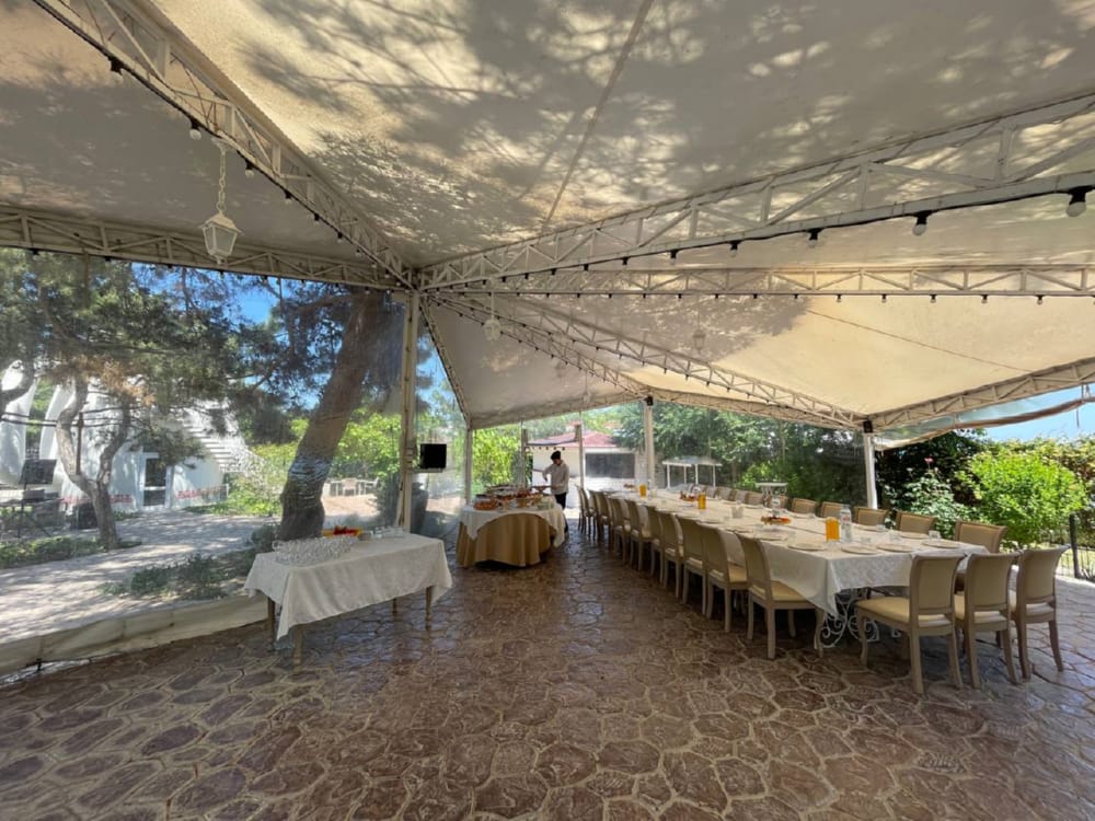 В стоимость проживания включено питание «шведский стол» - завтраки, полупансион (завтрак и ужин), 3-разовое питание (завтраки, ужины - «шведский стол», обеды - комплексные, независимо от сезона). При низкой загрузке и в межсезонье предоставляется комплексное питание. Ресторан расположен на первом этаже отеля и рассчитан на 60 посадочных мест. В парковой зоне открыто летнее семейное кафе «Замок Чая». Имеются зона для выездной свадебной церемонии и банкетный зал на 55 мест. Осуществляется доставка еды и напитков в номер.