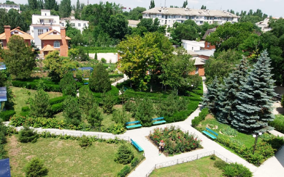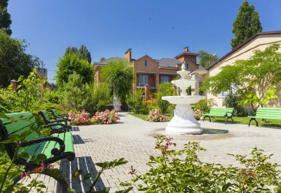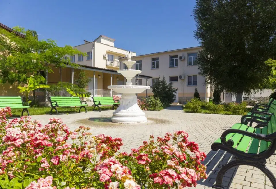 Пансионат занимает парковую зону площадью 4 гектара с зонами отдыха, прогулочными аллеями и фонтаном. В парке имеются розарий, банановый сад, березовая роща, произрастают гибискусы и кипарисы. Жилой фонд состоит из трех корпусов на 106 номеров и 4 коттеджей. Общая вместимость пансионата - 210 мест с возможностью дополнительного размещения. В каждом номере имеется мини-холодильник, телевизор, кондиционер.