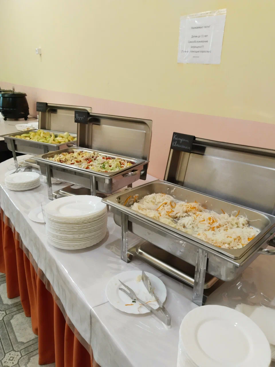 В стоимость проживания включено 3-разовое питание по системе «шведский стол». При низкой загрузке возможен переход на комплексное питание. Столовая состоит из 4 обеденных залов. К услугам гостей парковка, собственный медпункт, библиотека. Для детей оборудована игровая площадка.