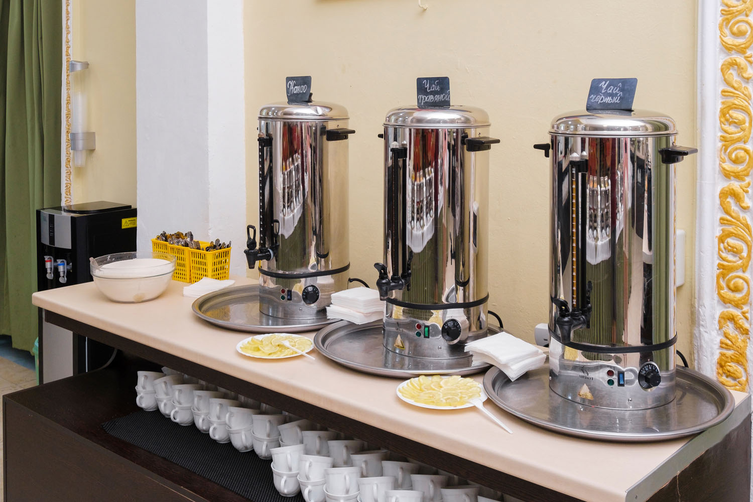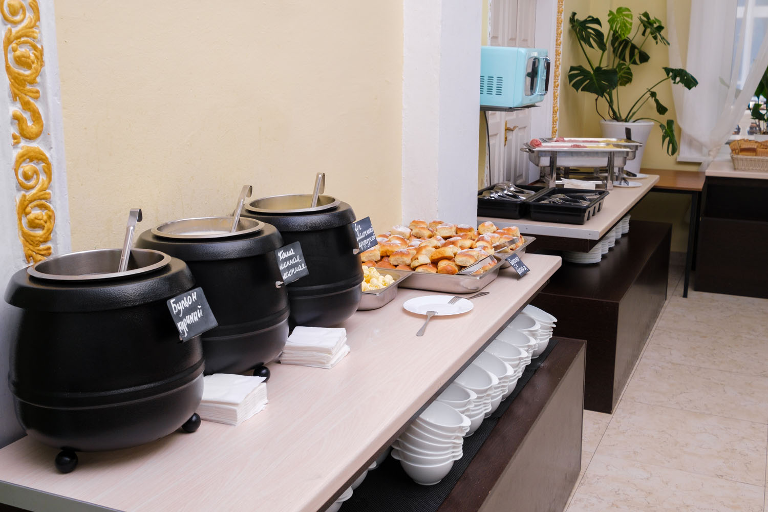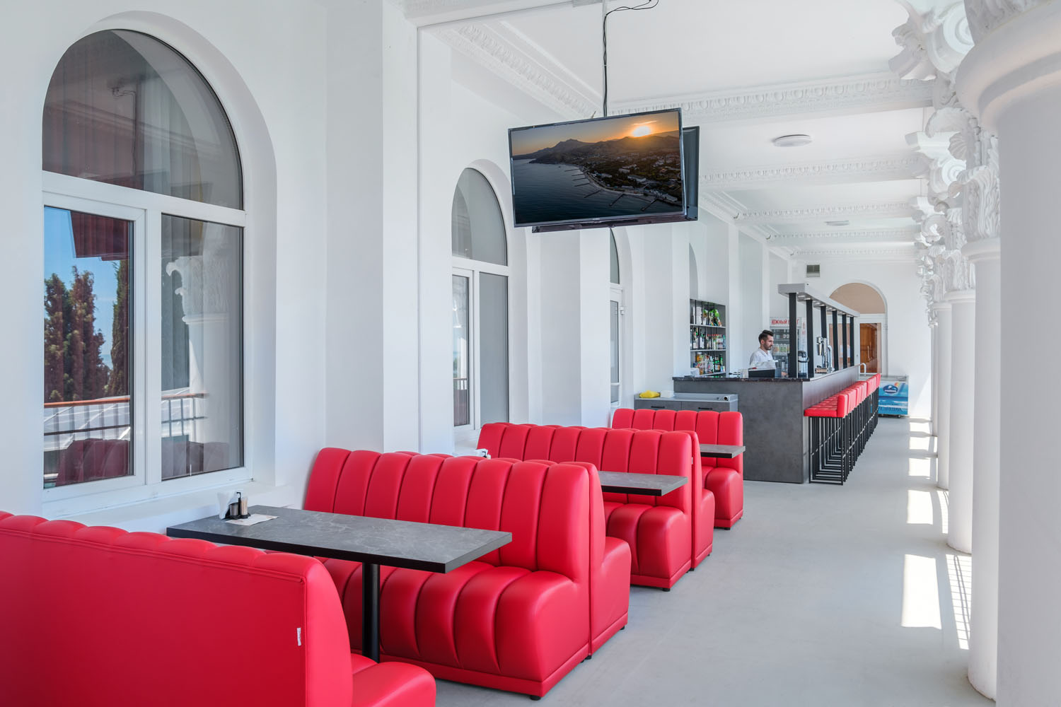 Отель осуществляет обслуживание по системе «Все включено» с 1 июня по 30 сентября. В стоимость проживания входит 3-разовое питание по системе «шведский стол», промежуточное питание в кафе «Синее море»: закуски в ассортименте, слабоалкогольные напитки, пиво, квас, мороженое, сладости. В зале ресторана установлены детские стульчики для кормления.
