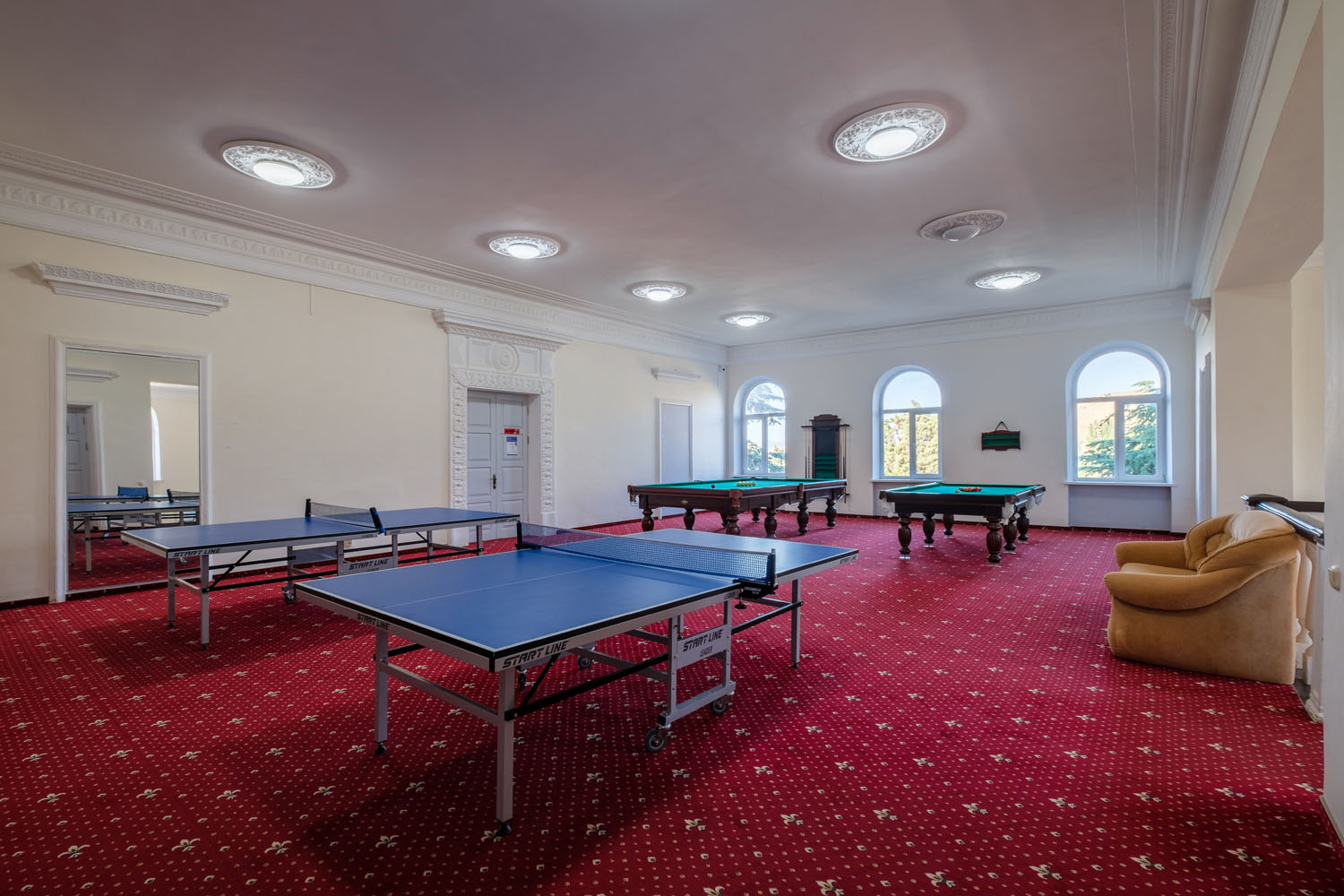 Для занятий спортом открыт тренажерный зал, в парковой зоне расположены 2 открытых теннисных корта, уличные тренажеры. Для отдыхающих организованы дискотеки, шоу-программы, вечера живой музыки, спортивные соревнования. На территории расположен летний амфитеатр со сценой и зрительным залом на 500 мест, открыт киноконцертный зал. Отдыхающие могут провести время за игрой в бильярд, настольный теннис, аэрохоккей, посетить турецкую баню - хаммам. К услугам гостей парковка, Wi-Fi, прачечная, парикмахерская и маникюрный салон.