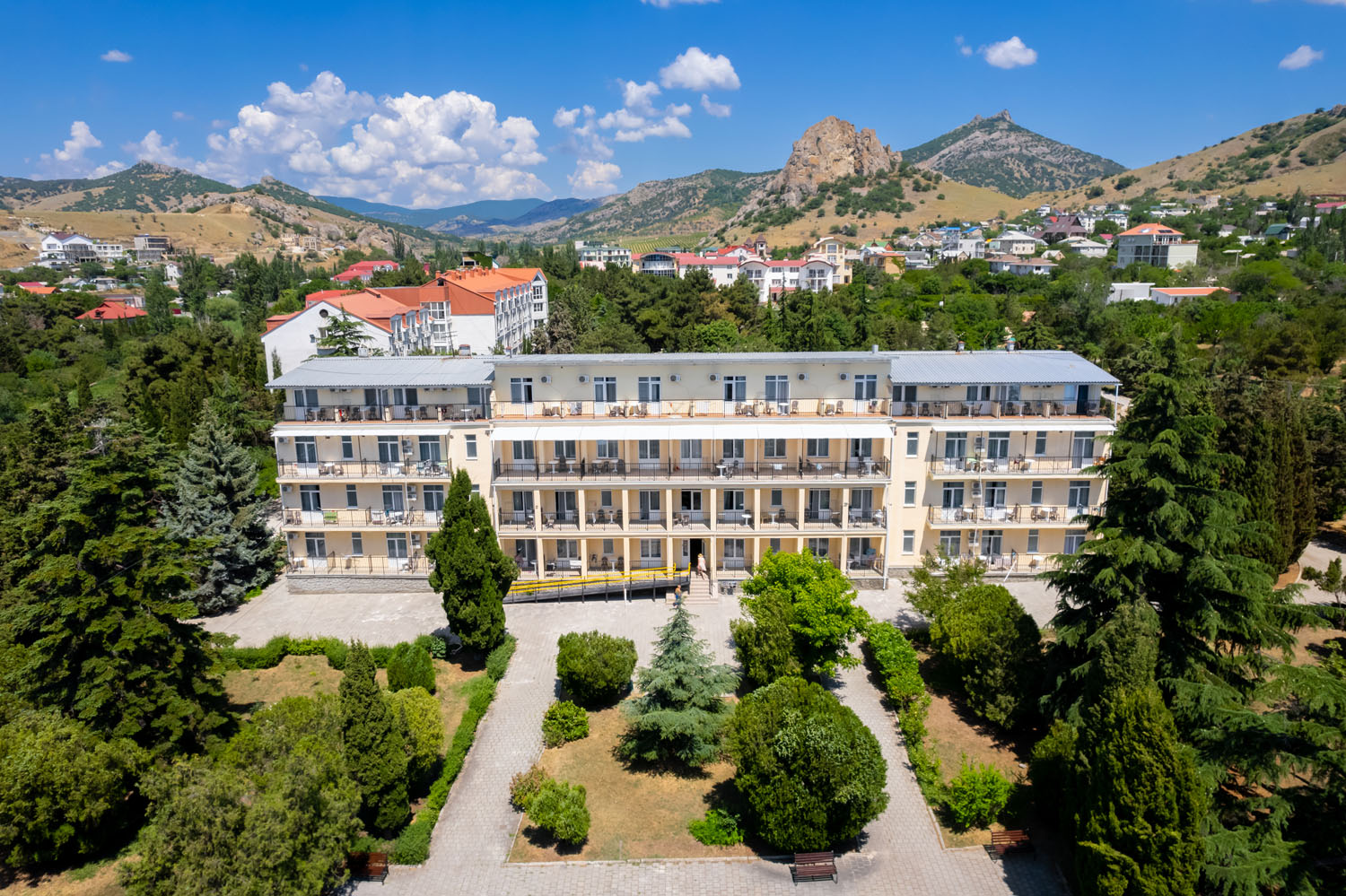 Парк-отель «Гранд Курорт» (бывш. Пансионат «Крымское Приморье») находится в 25 км от Феодосии в живописном поселке Курортное у подножья горного массива заповедника Кара-Даг. Отель занимает обширную территорию площадью в 8,5 гектаров. Парковая зона благоустроена прогулочными аллеями и зонами отдыха.