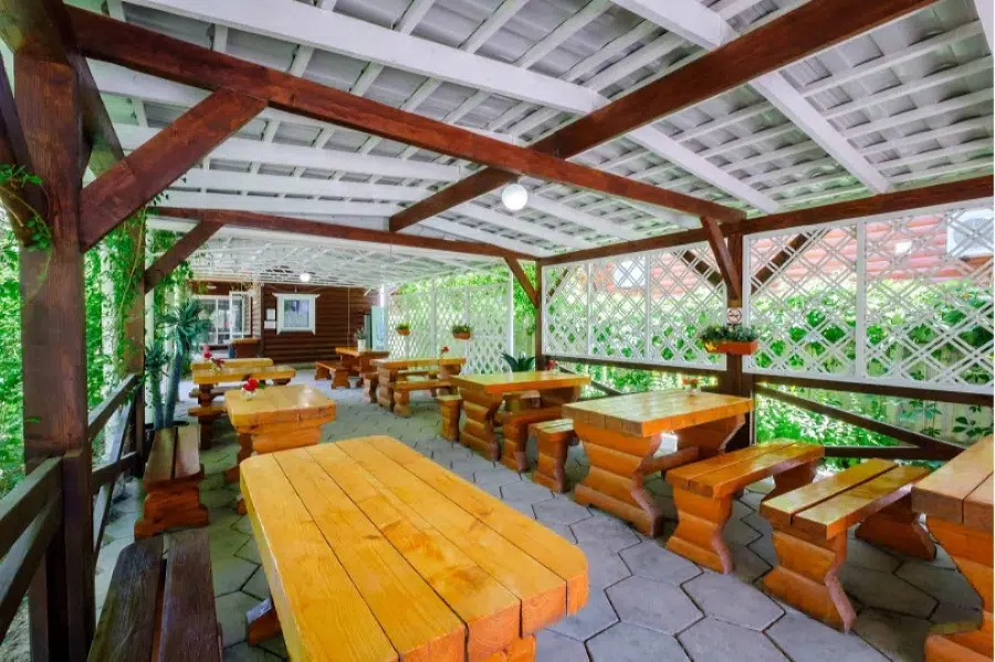 Питание не включено в стоимость проживания. В гостинице работает столовая, предлагающая обслуживание по меню или комплексное питание на завтрак, обед и ужин. Столовая расположена на летней площадке. Организована зона для приготовления барбекю с мангалом.