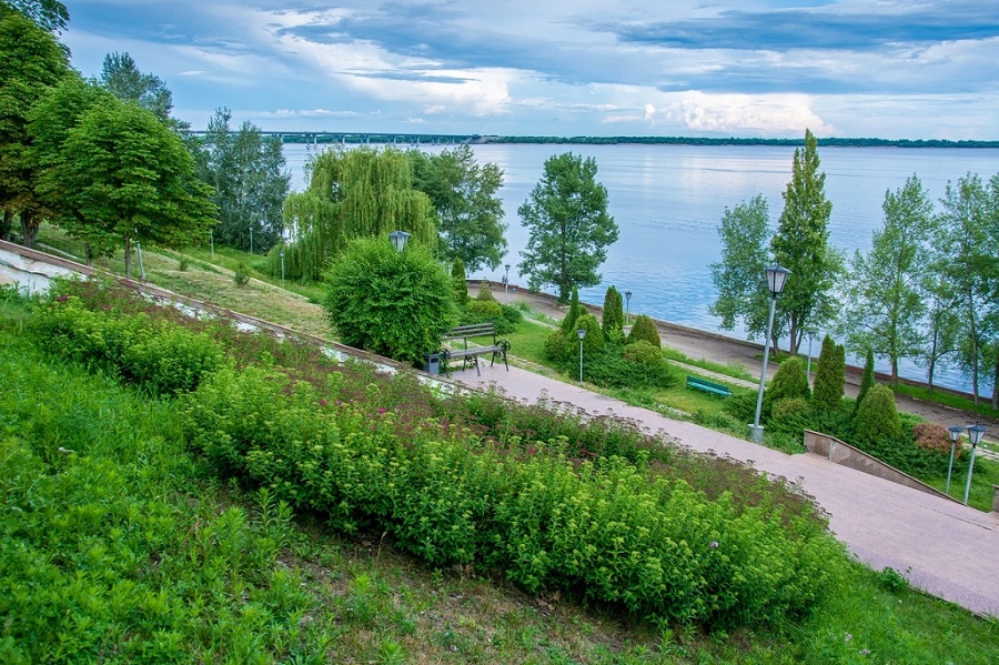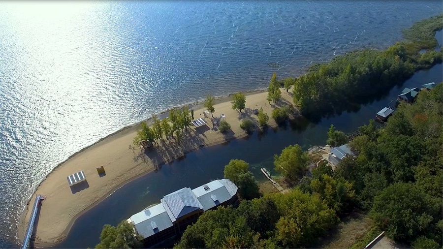 На берегу Волги благоустроена набережная с тремя ярусами. Летом на набережной круглосуточно работает кафе и регулярно проводятся развлекательные и спортивные мероприятия. Собственный песчаный пляж санатория оборудован навесами и кабинками для переодевания.