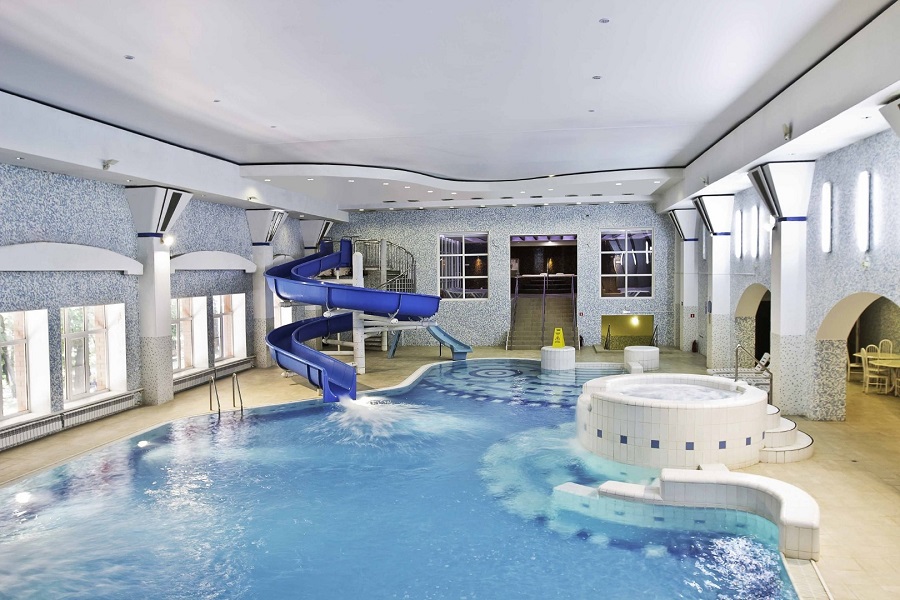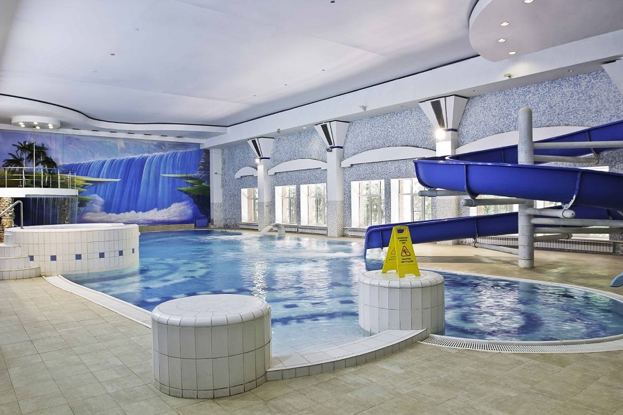 Аквапарк включает в себя: крытый бассейн с джакузи, подводным гейзером, водными противотоками и горкой; бани (финская, хаммам); массажный кабинет; бар. Дополнительно работает ВИП-сауна с комнатой отдыха и бильярдом. Также в физкультурно-оздоровительном комплексе расположены тренажерный и спортивный залы.