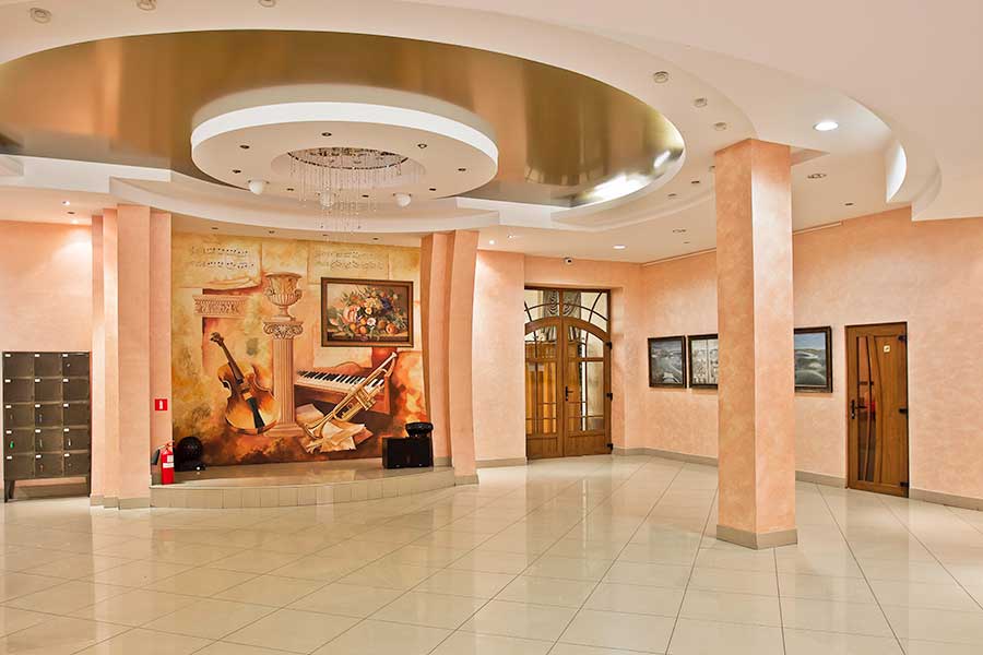 Для маленьких гостей работает детская комната. Воспитатели проводят развивающие занятия и творческие мастер-классы. На территории расположена игровая площадка с горками и каруселью. В кинозале проходят показы мультфильмов и детских фильмов.