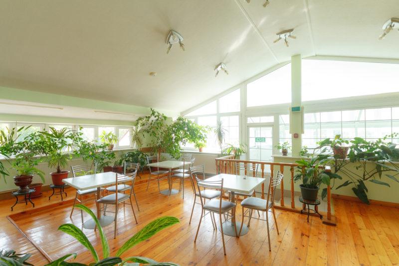 В стоимость проживания включено 4-разовое питание по заказному 2-недельному меню. Питание организовано в столовой, расположенной в основном корпусе. По показаниям врача назначается диетическое меню. На 4 этаже корпуса №1 открыт фитобар, а на территории расположена беседка с мангалом.